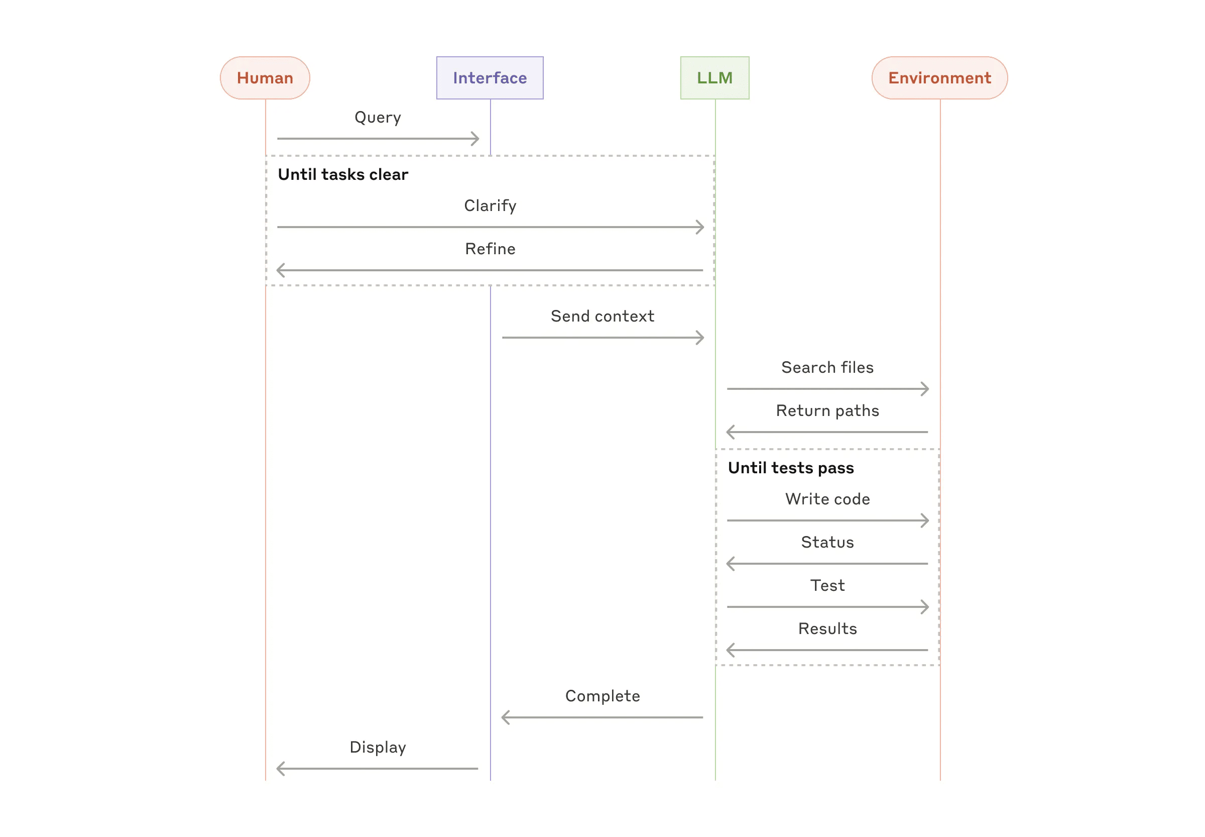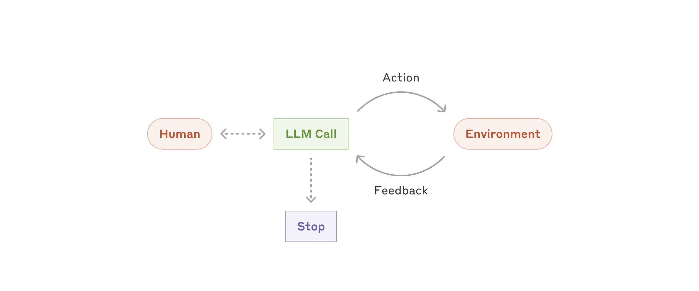 这里的术语有些混乱,但通常我指的是一个在循环中执行的进程,该进程对其执行路径中的下一步操作拥有一定的自主权。这与预定义的执行路径(例如定义为有向无环图的一组步骤,我们称之为工作流)形成对比。Agent 通常包含一个基于最大深度或满足某个条件(如“测试通过”)的退出条件。