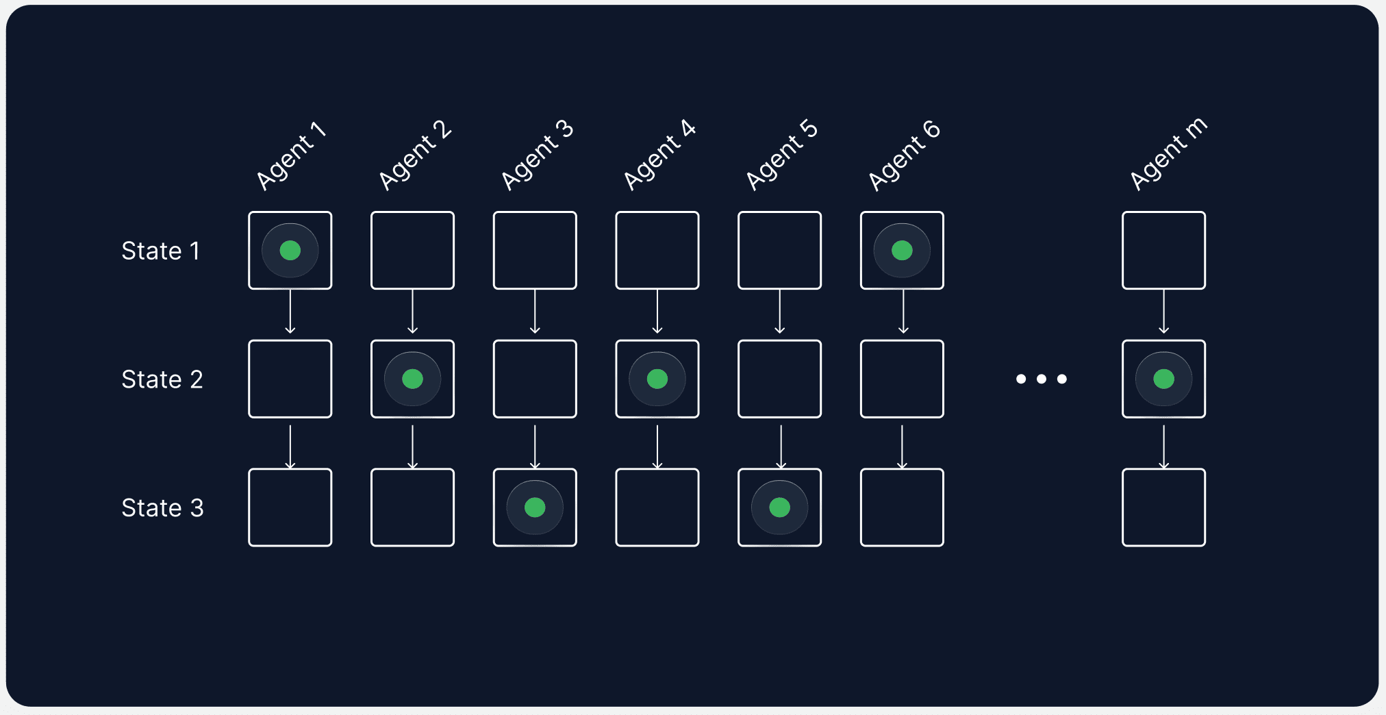 让我们将这一系列特征转化为对运行时的要求。为了限定问题范围,假设我们正在处理一个在远程执行的 Agent,而非在用户本地机器上(尽管 Go 对于分发本地 Agent 也是一个绝佳选择)。在远程执行的情况下,为每次 Agent 执行运行一个单独的容器成本会高得惊人。因此,在大多数情况下(尤其是当我们的 Agent 主要是简单的 I/O 和 LLM 调用时),我们最终会得到大量并发运行的轻量级进程。每个进程可以处于特定状态(例如,“搜索文件中”、“生成代码中”、“测试中”)。请注意,不同 Agent 执行的状态顺序可能并不相同。